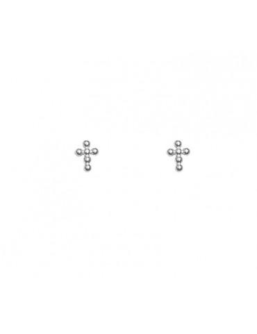 Pendientes cruz bolitas en plata de ley y bañado en oro