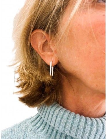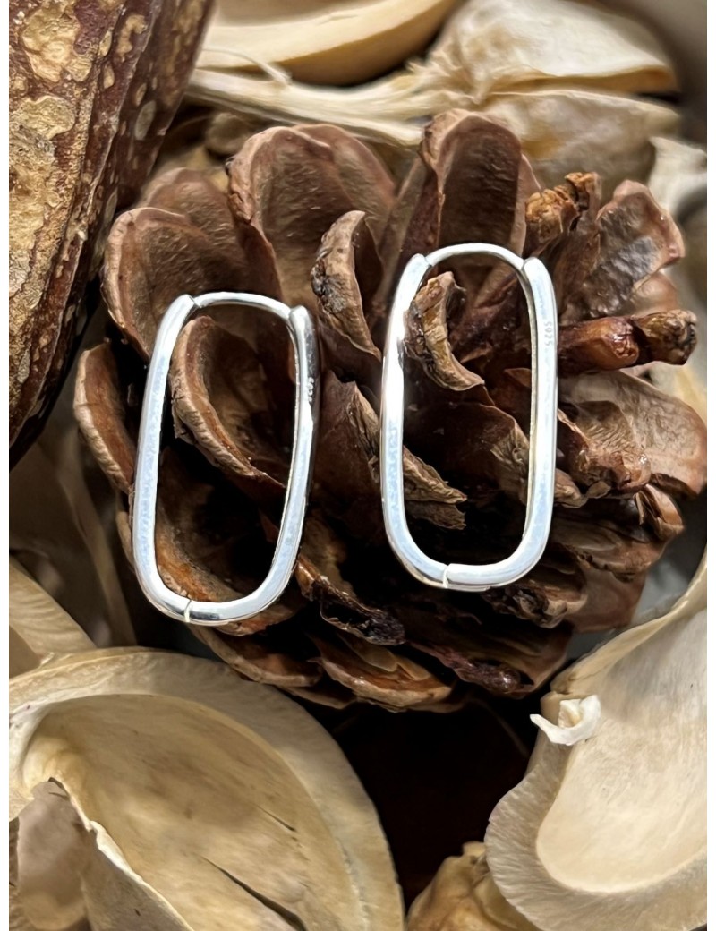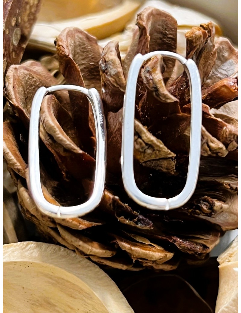 Pendientes aros alargados de plata de ley en forma rectangular con los bordes redondeados