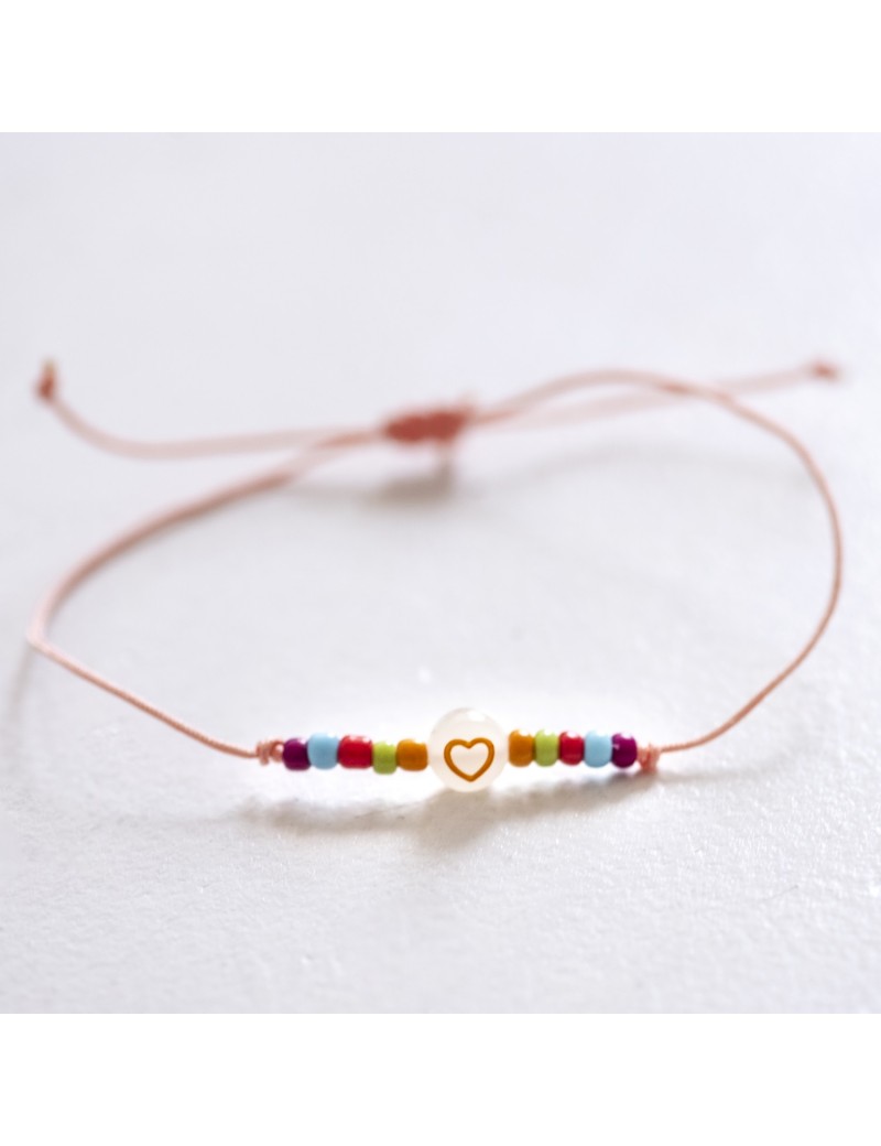 Pulsera fantasía de resina, cuentas de cristal e hilo macramé en varios colores con nudo corredizo